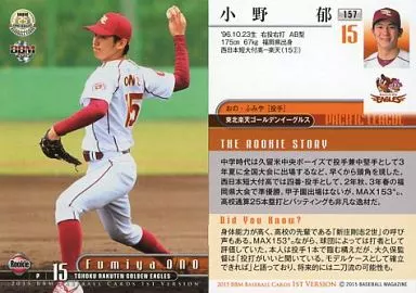 BBM / Regular Card / Rookie / Tohoku Rakuten Golden Eagles / BBM2015 Baseball Card 1 st Version 157 [Regular Card] : Fumiya Ono