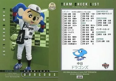 BBM / Regular Card / Team Checklist / Chunichi Dragons / BBM2015 Baseball Card 1 st Version 334 [Regular Card] : Team Checklist Chunichi Dragons