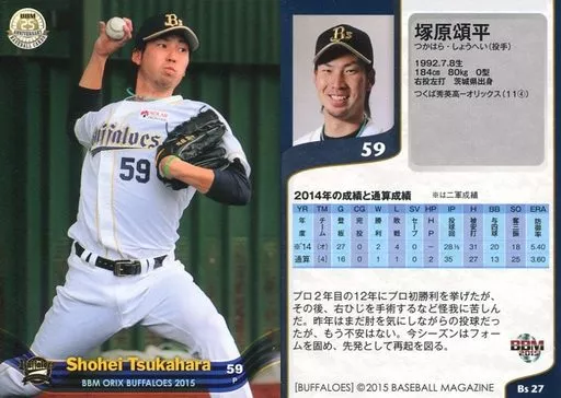 BBM / Regular Card / BBM2015 Orix Buffaloes Bs27 [Regular Card] : Shohei Tsukahara