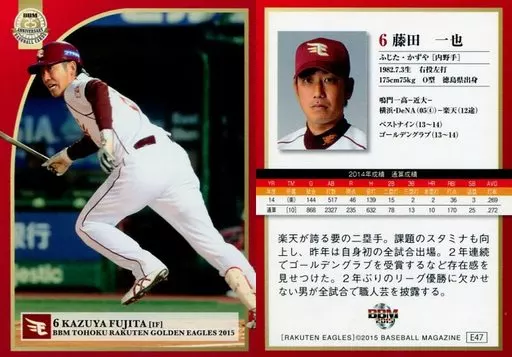 Japanese title: BBM/レギュラーカード/BBM2015 東北楽天ゴールデンイーグルス E47 [レギュラーカード] : 藤田一也