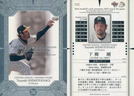 Japanese title: BBM/レギュラーカード/-/阪神タイガース/BBM2005 Touch the game(タッチ・ザ・ゲーム) 112 [レギュラーカード] : 下柳剛