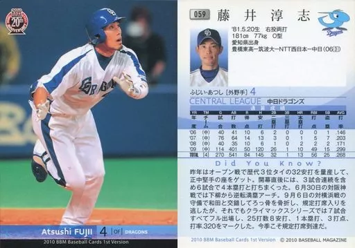BBM / Regular Card / Chunichi Dragons / BBM 2010 Baseball Card 1 st Version 059 [Regular Card] : Atsushi Fujii