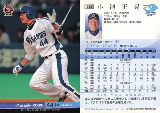 BBM / Regular Card / Chunichi Dragons / BBM 2010 Baseball Card 1 st Version 065 [Regular Card] : Masaaki Koike