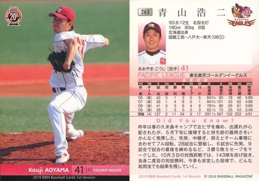 Japanese title: BBM/レギュラーカード/東北楽天ゴールデンイーグルス/BBM 2010 ベースボールカード 1stバージョン 263 [レギュラーカード] : 青山浩二