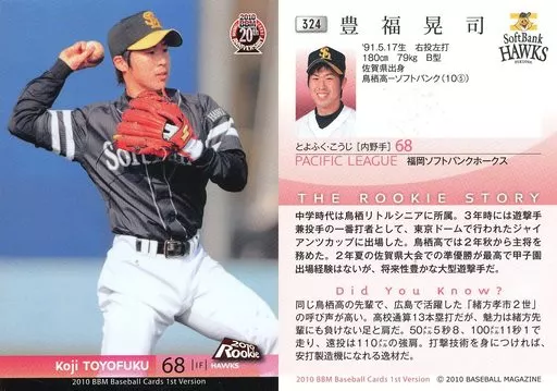 Japanese title: BBM/レギュラーカード/福岡ソフトバンクホークス/BBM 2010 ベースボールカード 1stバージョン 324 [レギュラーカード] : 豊福晃司