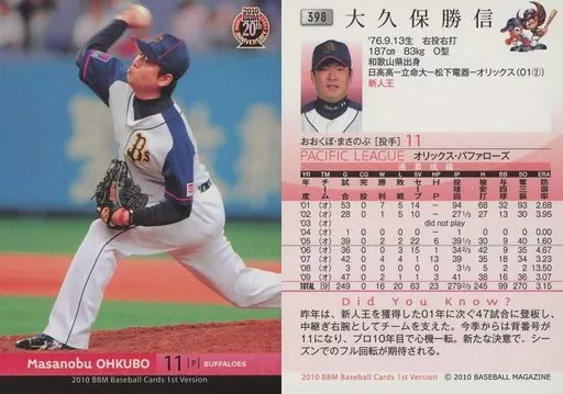 Japanese title: BBM/レギュラーカード/オリックス・バファローズ/BBM 2010 ベースボールカード 1stバージョン 398 [レギュラーカード] : 大久保勝信