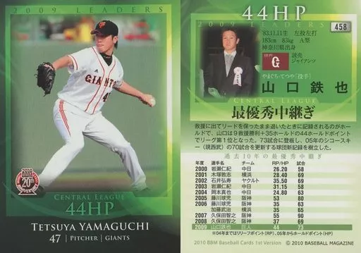 Japanese title: BBM/レギュラーカード/読売ジャイアンツ/BBM 2010 ベースボールカード 1stバージョン 458 [レギュラーカード] : 山口鉄也