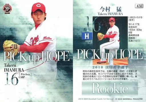 BBM / Regular Card / Hiroshima Toyo Carp / BBM 2010 Baseball Card 1 st Version 474 [Regular Card] : Takeru Imamura