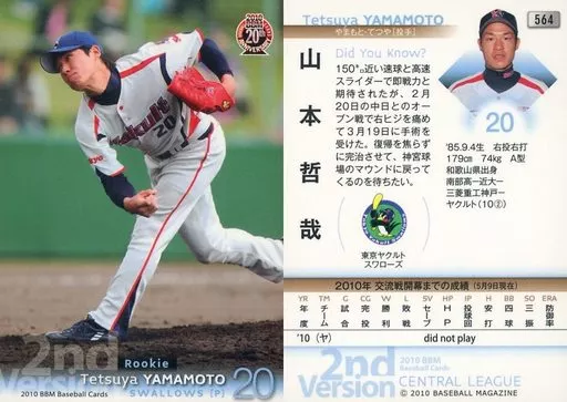 Japanese title: BBM/レギュラーカード/東京ヤクルトスワローズ/BBM 2010 ベースボールカード 2ndバージョン 564 [レギュラーカード] : 山本哲哉