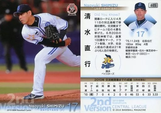 Japanese title: BBM/レギュラーカード/横浜ベイスターズ/BBM 2010 ベースボールカード 2ndバージョン 605 [レギュラーカード] : 清水直行