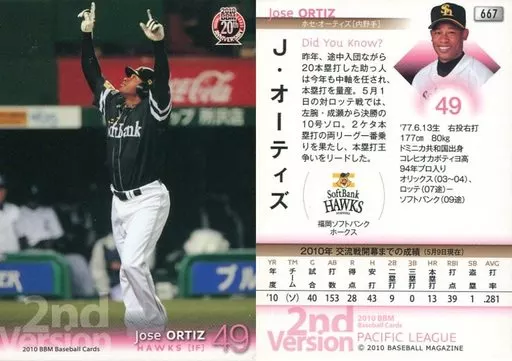 BBM / Regular Card / Fukuoka Soft Bank Hawks / BBM 2010 Baseball Card 2 nd Version 667 [Regular Card] : Ortiz