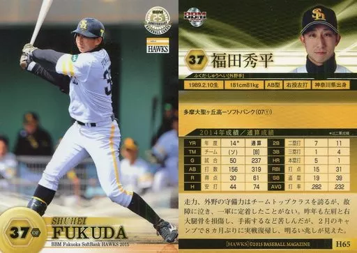 Japanese title: BBM/レギュラーカード/BBM2015 福岡ソフトバンクホークス H65 [レギュラーカード] : 福田秀平
