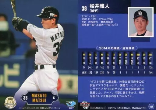 Japanese title: BBM/レギュラーカード/BBM2015 中日ドラゴンズ D35 [レギュラーカード] : 松井雅人