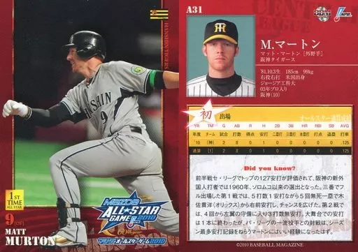 Japanese title: BBM/阪神タイガース/BBM2010 オールスターカード A31 : マートン