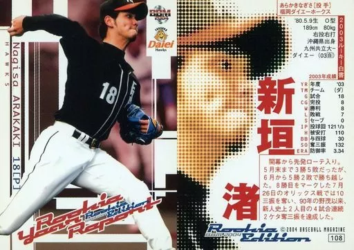 Japanese title: BBM/レギュラーカード/福岡ダイエーホークス/BBM2004 ルーキーエディション 108 [レギュラーカード] : 新垣渚