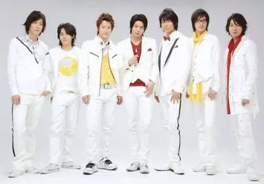 Japanese title: 生写真(男性)/俳優 PureBOYS/集合(7人)/横型・全身・衣装白・黄色・赤・口閉じ・背景グレー・センター八神蓮/生写真