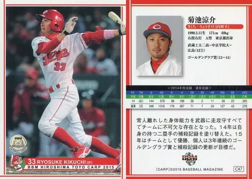BBM / Regular Card / BBM2015 Hiroshima Toyo Carp C47 [Regular Card] : Ryosuke Kikuchi