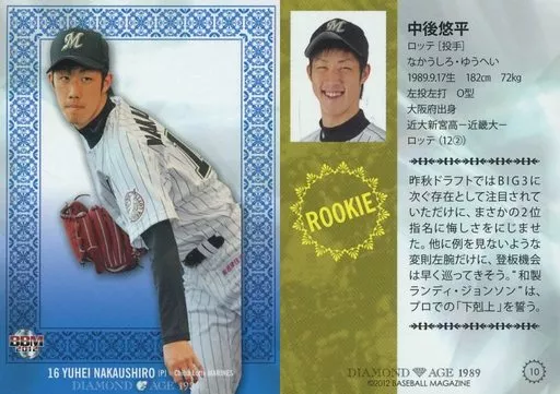 Japanese title: BBM/レギュラーカード/千葉ロッテマリーンズ/BBM2012 DIAMOND AGE 1989 10 [レギュラーカード] : 中後悠平