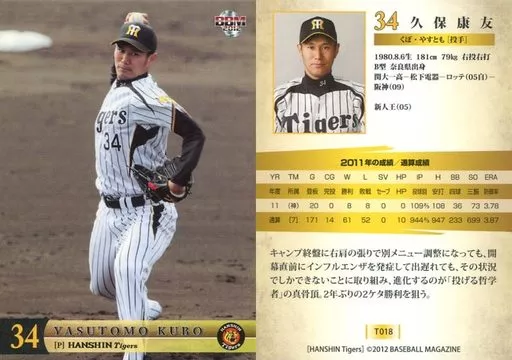 Japanese title: BBM/レギュラーカード/BBM2012 阪神タイガース T018 [レギュラーカード] : 久保康友