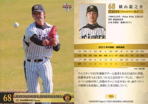 BBM / Regular Card / BBM2012 Hanshin Tigers T033 [Regular Card] : Ryunosuke Yokoyama