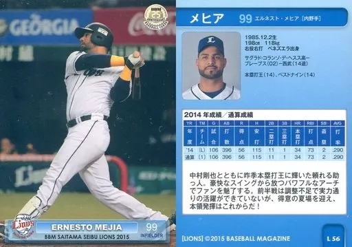 Japanese title: BBM/レギュラーカード/BBM2015 埼玉西武ライオンズ L56 [レギュラーカード] : メヒア
