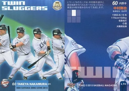 Japanese title: BBM/レギュラーカード/パズルカード/BBM2015 埼玉西武ライオンズ L74 [レギュラーカード] : 森友哉&中村剛也