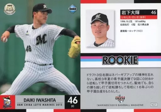 Japanese title: BBM/レギュラーカード/BBM2015 千葉ロッテマリーンズ M25 [レギュラーカード] : 岩下大輝