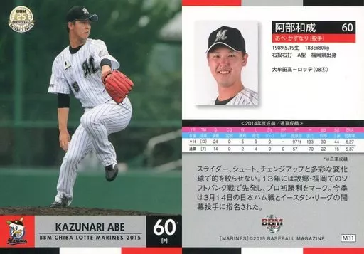 Japanese title: BBM/レギュラーカード/BBM2015 千葉ロッテマリーンズ M31 [レギュラーカード] : 阿部和成
