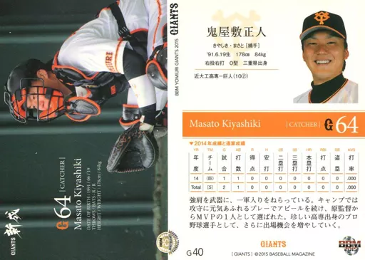 Japanese title: BBM/レギュラーカード/BBM2015 読売ジャイアンツ G40 [レギュラーカード] : 鬼屋敷正人