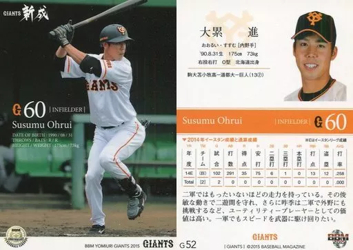 Japanese title: BBM/レギュラーカード/BBM2015 読売ジャイアンツ G52 [レギュラーカード] : 大累進