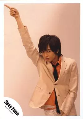 Japanese title: 生写真(ジャニーズ)/アイドル/Sexy Zone Sexy Zone/中島健人/膝上・衣装白・オレンジ・右手人差し指立て・口閉じ・背景白/公式生写真