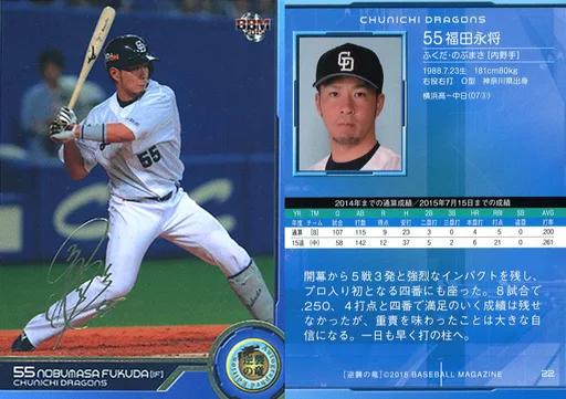 Japanese title: BBM/レギュラーカード/BBM2015 中日ドラゴンズ「逆襲の竜」 22 [レギュラーカード] : 福田永将