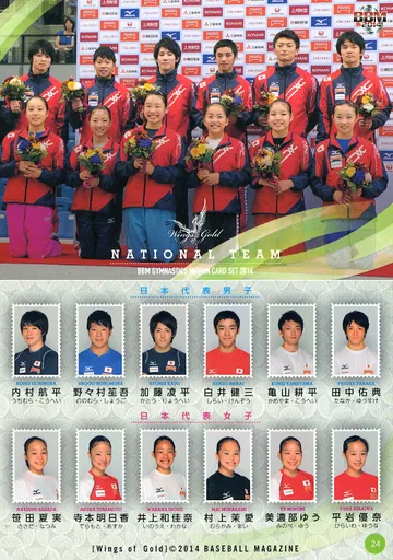 Japanese title: BBM/レギュラーカード/BBM2014 体操NIPPON Wings of Gold 24 [レギュラーカード] : 男女集合
