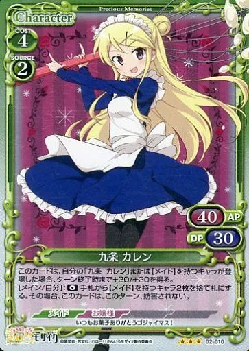 Japanese title: プレシャスメモリーズ/R/キャラクター/緑/ハロー!!きんいろモザイク ブースターパック 02-010[R]:(ホロ)九条 カレン