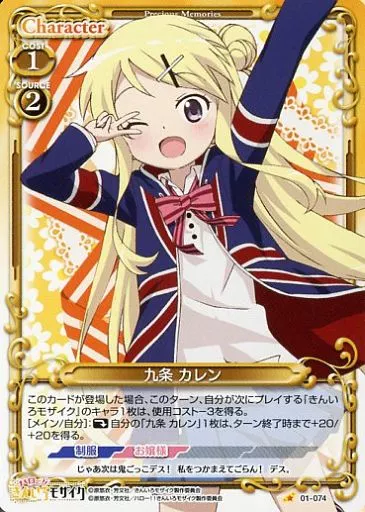 Japanese title: プレシャスメモリーズ/C/キャラクター/黄/ハロー!!きんいろモザイク ブースターパック 01-074[C]:九条 カレン