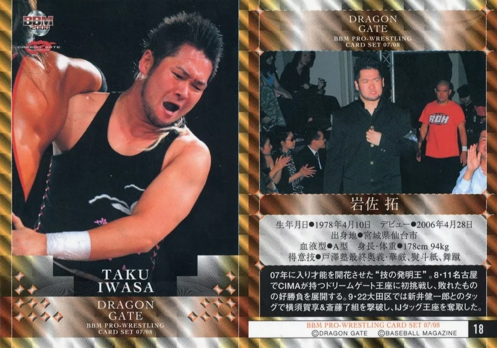 Japanese title: BBM/レギュラーカード/BBM2008 プロレスカードセット07-08 DRAGON GATE 18[レギュラーカード]:岩佐拓