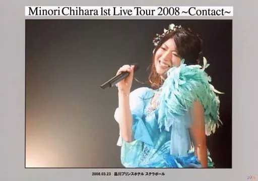 Official photo (female) / voice actor Misato Chiwara / Live Photo / Horizontal / Bust up / Costume Blue / Right Hand Microphone / "2008.03.23 Shinagawa Prince Hotel Stella Ball" / Minori Chihara 1st Live Tour 2008 ~ Contact ~
