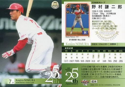 BBM / Regular Card / Hiroshima Toyo Carp / BBM2015 BBM Baseball Card 25 th Anniversary 034 [Regular Card] : Kenjiro Nomura