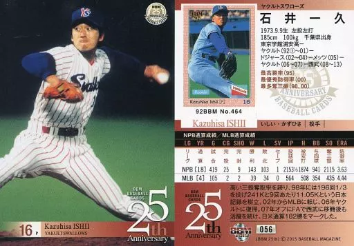 Japanese title: BBM/レギュラーカード/ヤクルトスワローズ/BBM2015 BBMベースボールカード25th Anniversary 056 [レギュラーカード] : 石井一久