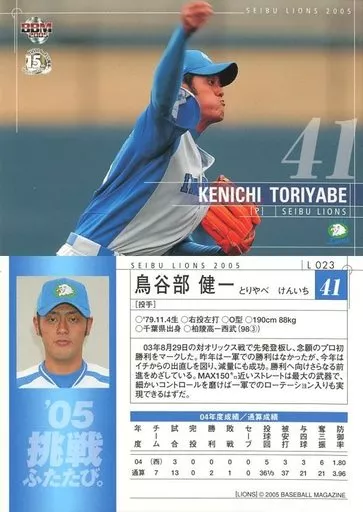 BBM / Regular Card / BBM2005 Seibu Lions L023 [Regular Card] : Ken' ichi Toriyabe