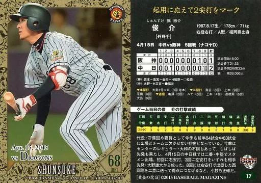 BBM / Regular Card / BBM2015 Hanshin Tigers Authentic Edition 「 Golden Tiger 」 [Batter] 17 [Regular Card] : Shunsuke