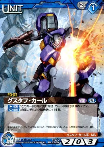 Japanese title: ガンダムウォー/N/青/第11弾 ブースターパック「反逆の咆哮」 11E/U BL216N[N]:グスタフ・カール