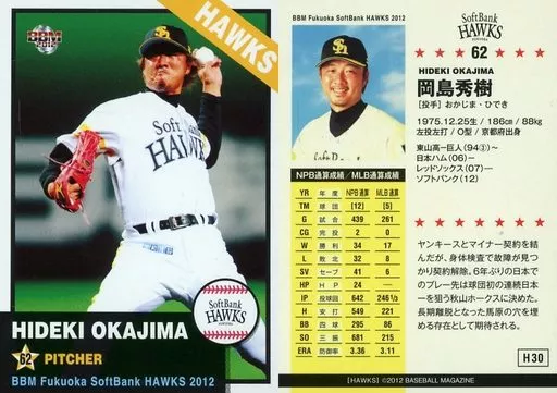 Japanese title: BBM/レギュラーカード/BBM2012 福岡ソフトバンクホークス H30 [レギュラーカード] : 岡島秀樹