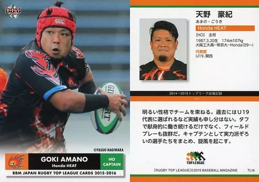 Japanese title: BBM/レギュラーカード/キャプテン/Honda HEAT HEAT/BBM2015 ジャパン ラグビー トップリーグカード2015-2016 TL16 [レギュラーカード] : 天野豪紀