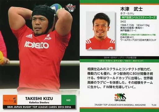 BBM / Regular Card / - / Kobe Steel Kobelco Steeler / BBM2015 Japan Rugby Top League Card 2015-2016 TL30 [Regular Card] : Takeshi Kizu