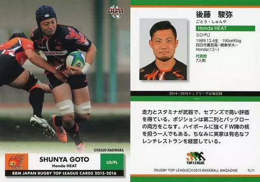 BBM / Regular Card / - / Honda HEAT HEAT/BBM2015 Japan Rugby Top League Card 2015-2016 TL71 [Regular Card] : Gotō 駿弥