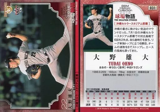 BBM / Regular Card / Chunichi Dragons / BBM2016 Historic Collection Stadium Story 031 [Regular Card] : Yudai Ohno