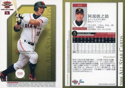 Japanese title: BBM/レギュラーカード/読売ジャイアンツ/BBM2008 オールスターカード A15 [レギュラーカード] : 阿部慎之助