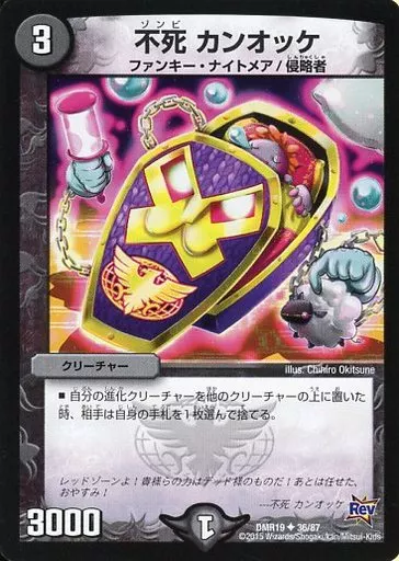 Japanese title: デュエルマスターズ/UC/闇/[DMR-19]革命 拡張パック第3章 禁断のドキンダムX 36/87[UC]:不死 カンオッケ