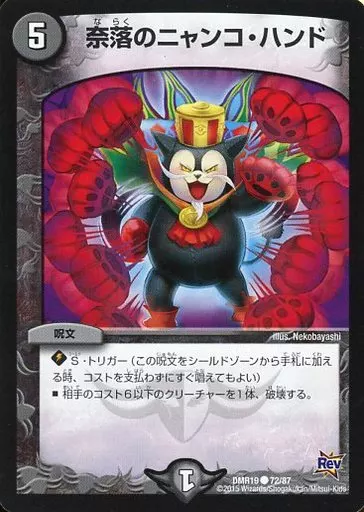 Japanese title: デュエルマスターズ/C/闇/[DMR-19]革命 拡張パック第3章 禁断のドキンダムX 72/87[C]:奈落ニャンコ・ハンド